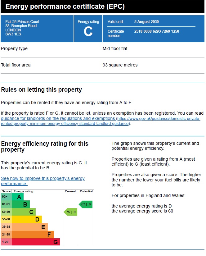 The property comprises a spacious reception room with plenty of natural light. Master bedroom with en-suite bathroom and further double bedroom with en-suite shower room. Modern fully fitted kitchen and bathrooms. Air conditioning throughout. Princes Court is a purpose-built residential block located directly opposite Harrods with Hyde Park a few minute‘s walk away and easy access to Imperial College, Chelsea, Kensington and the West End. Princes Court is wonderfully located for the outstanding shopping, restaurants, hotels, schools and transport links that Knightsbridge has to offer.
