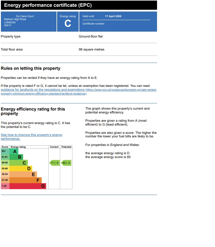 Du cane Court benefits from on site porterage and is located close to both Balham tube and rail stations.