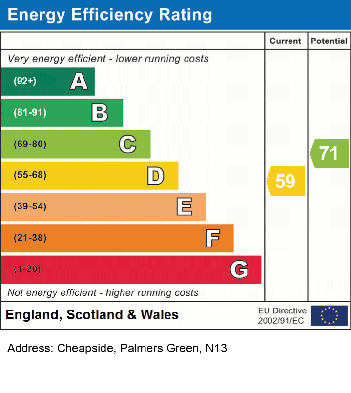 A well presented, spacious two bedroom first floor flat. Comprising large double bedroom, a large single bedroom, large separate reception room, separate kitchen and bathroom. Located on Cheapside parade just off Hedge Lane within easy access to local bus routes and local schools. Palmers Green shopping and transport facilities within easy access.