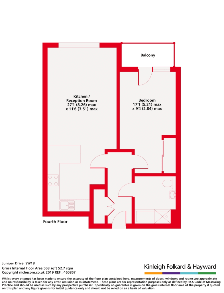 The property comprises modern open plan living space with a chic fully integrated modern kitchen, large double bedroom with ample storage and contemporary bathroom suite.
