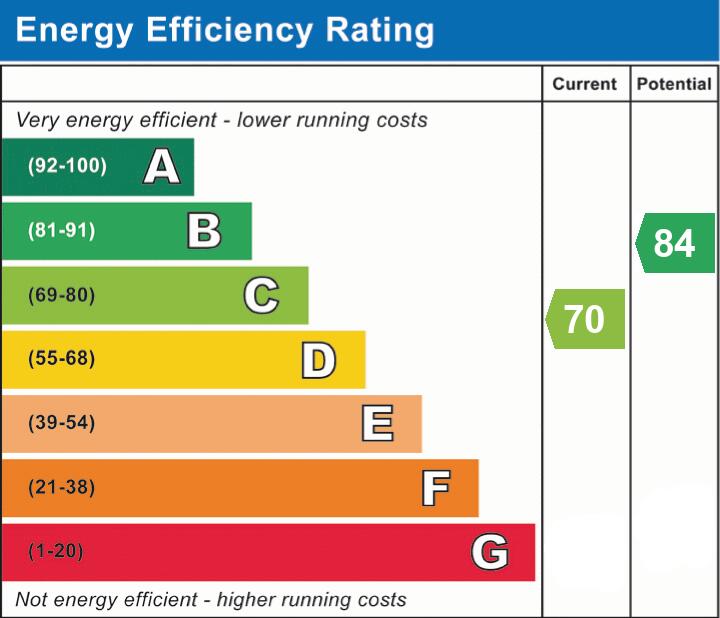 Upstairs, the main double bedroom (135 x 108) has built-in wardrobes and an en-suite shower room. There are three further bedrooms (three doubles, one generous single).