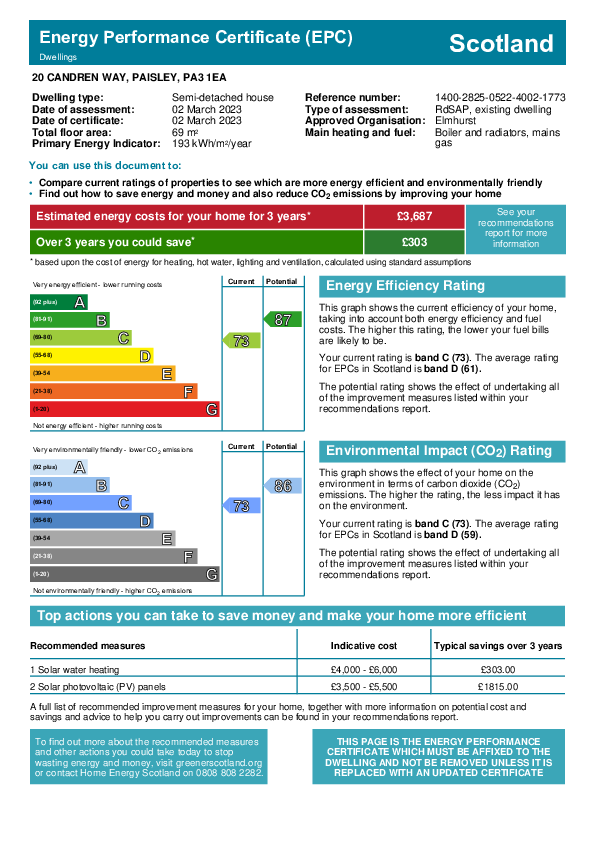 Paisley itself offers numerous shops, leisure amenities, Primary and Secondary schooling as well as Paisley Gilmour Street train station and good bus links. Paisley is well placed for Braehead shopping centre and the M8 motorway network giving easy access to Glasgow International Airport and Glasgow city centre.