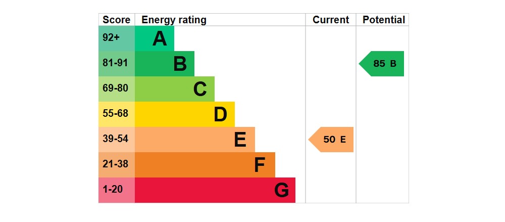 The fitted kitchen provides space for a freestanding oven and leads to an adjoining area with a sink, storage, and space for additional appliances. There is also a ground floor WC.