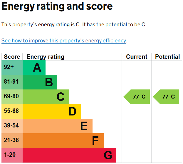 Externally, the property benefits from a large private garden with green lawn, perfect for relaxing or outdoor use.